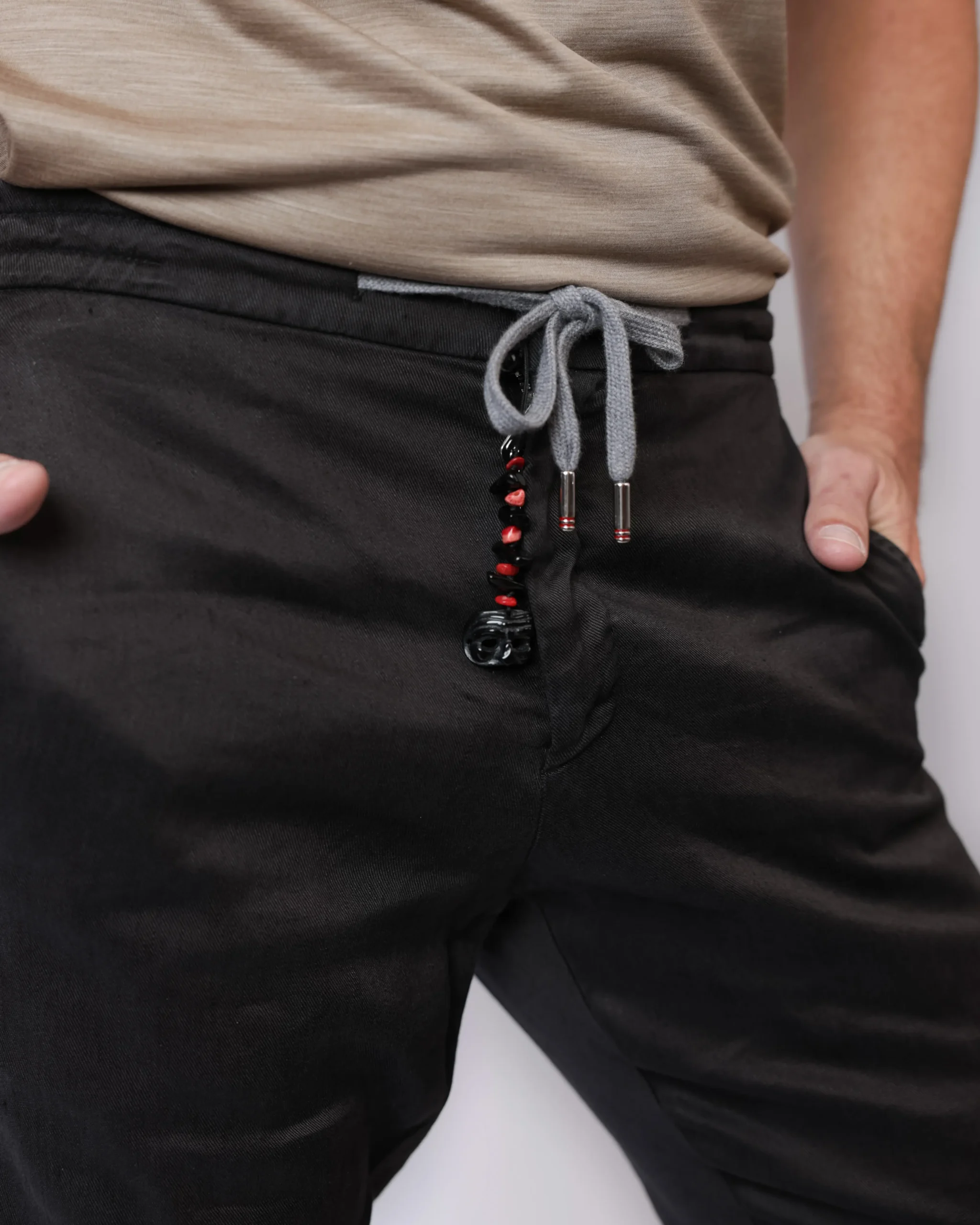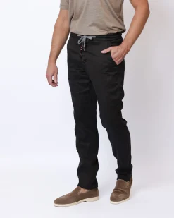 Штани Marco Pescarolo графітового кольору з поясом на кулисці та кишенями, виготовлені з легкої натуральної тканини, ідеально підходять для комфортного літа.
