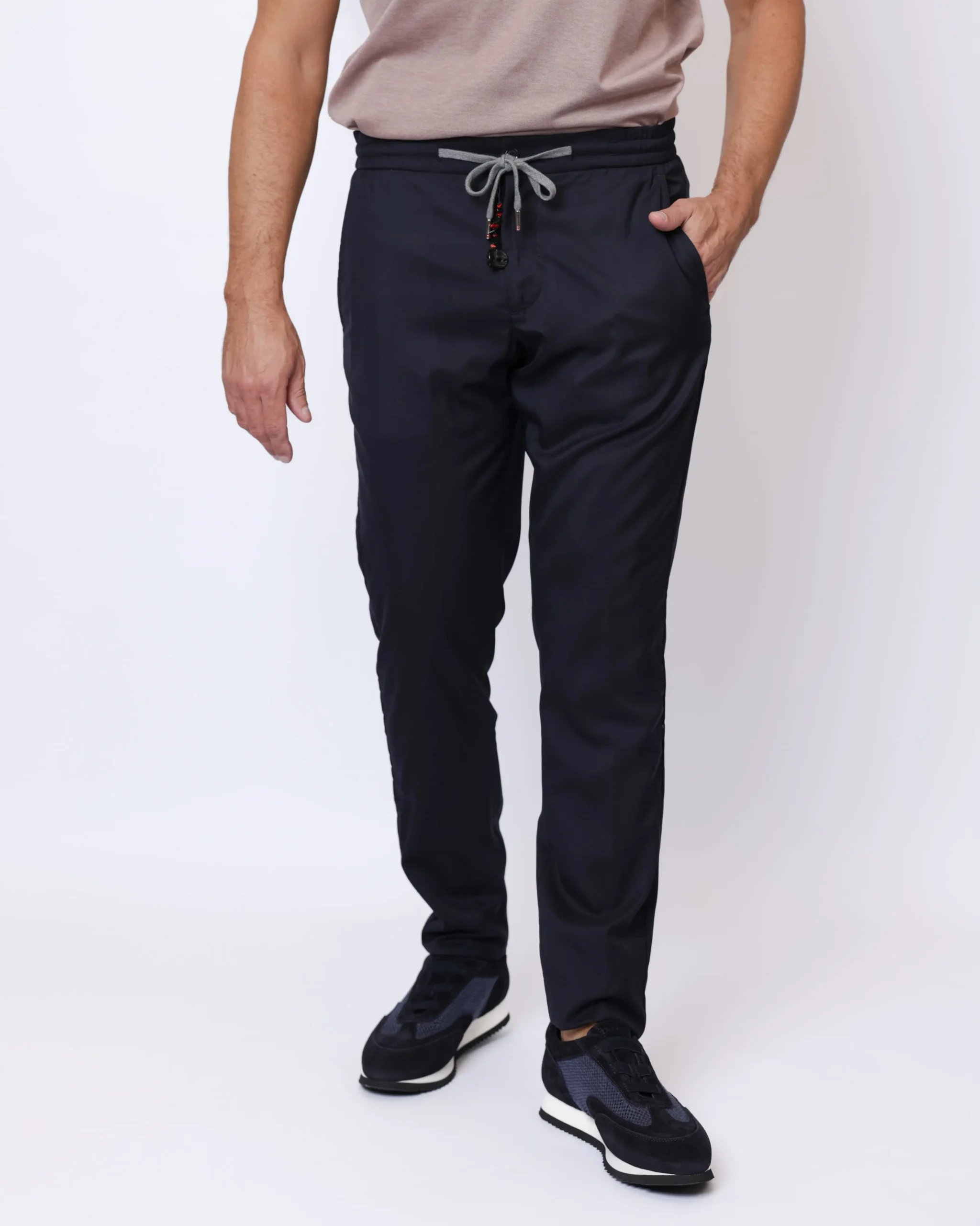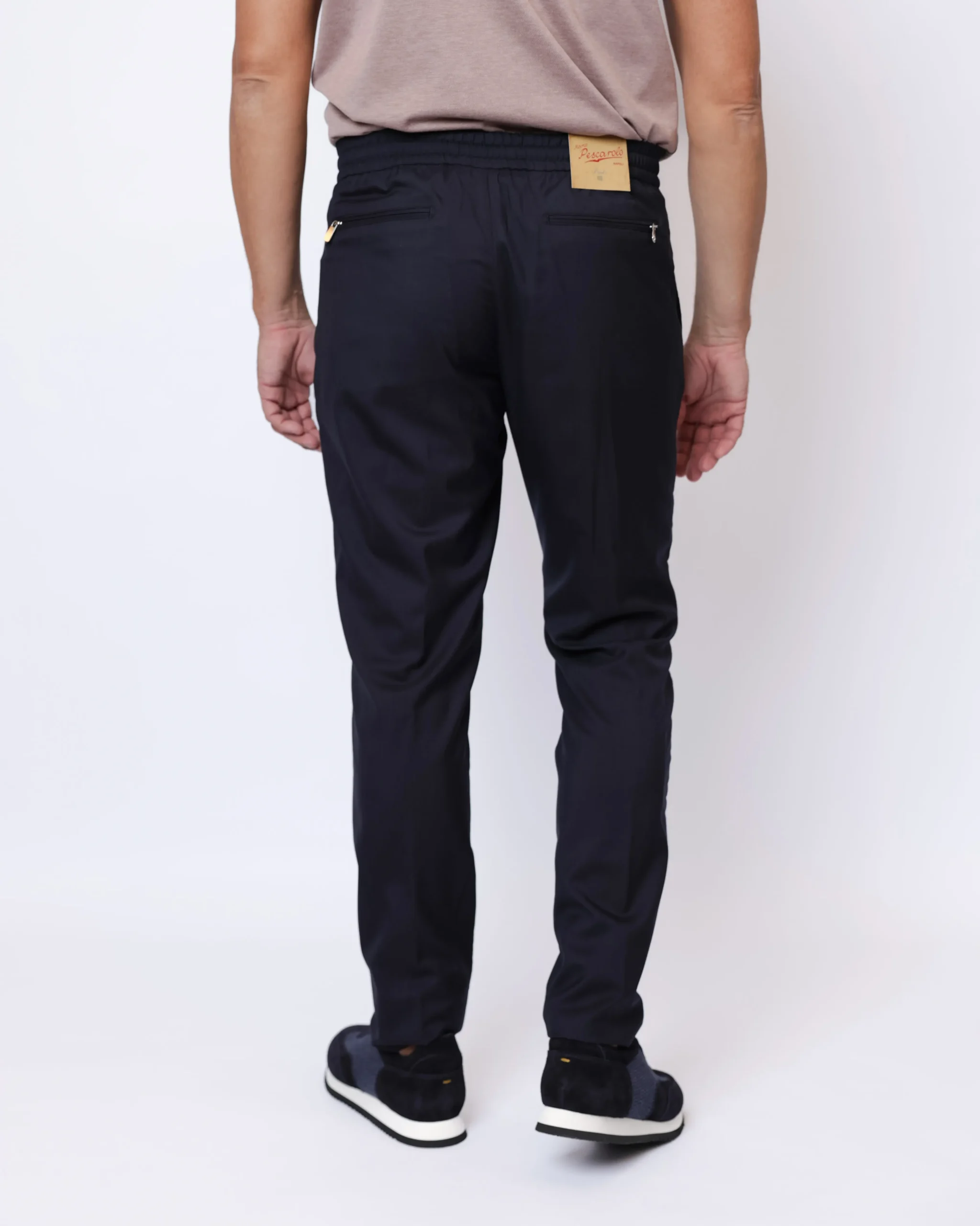 Елегантні брюки Marco Pescarolo з благородної суміші вовни та шовку у глибокому темно-синьому відтінку. Модель із еластичним поясом та куліскою поєднує класичний крій з комфортом сучасного casual стилю.
