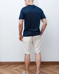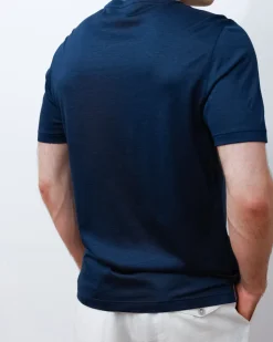 Чоловіча футболка Bounamassa з натурального шовку синього кольору — легка, дихаюча й вишукана. Ідеальна для створення елегантних літніх образів у стилі smart casual.