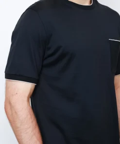 Чоловіча футболка Eleventy з 100% бавовни у чорному кольорі. Прямий крій, контрастні кантики та нагрудна кишеня додають стриманої елегантності.