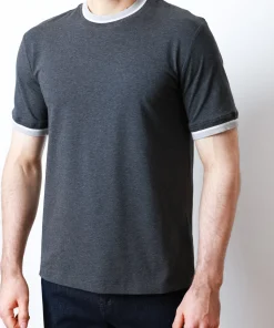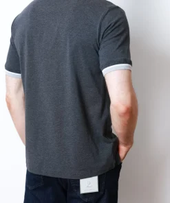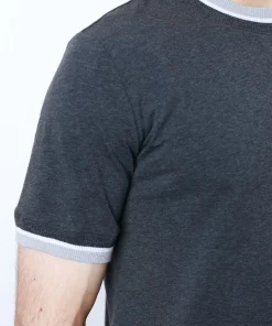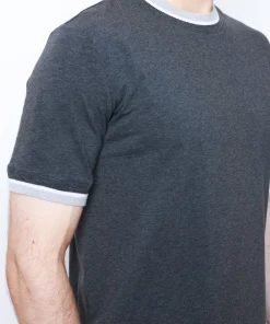 Темно-сірий колір із контрастними світло-сірими манжетами на горловині та рукавах додає стриманої елегантності. Завдяки лаконичному дизайну футболка чудово поєднується як із класичними брюками, так і з денімом чи спортивним одягом.