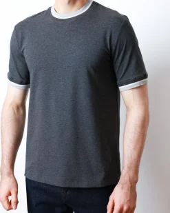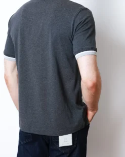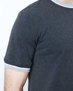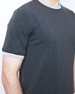 Темно-сірий колір із контрастними світло-сірими манжетами на горловині та рукавах додає стриманої елегантності. Завдяки лаконичному дизайну футболка чудово поєднується як із класичними брюками, так і з денімом чи спортивним одягом.