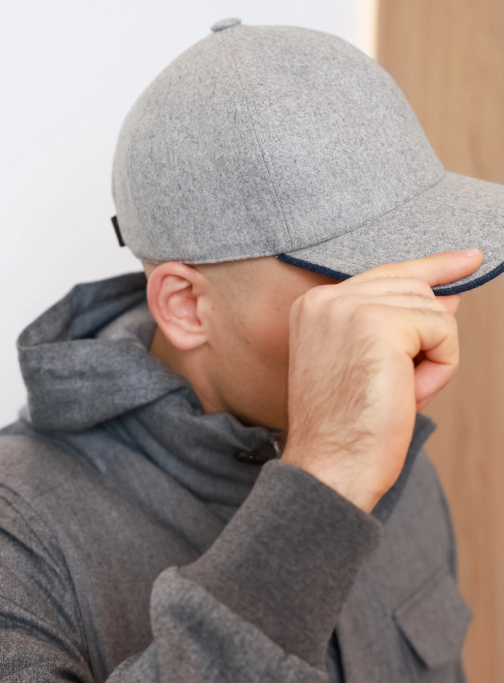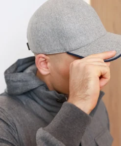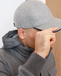 Кепка Buonamassa із вовни у світло-сірому кольорі з темно-синьою окантовкою козирка. Тепла, м’яка та елегантна модель із регульованим розміром.