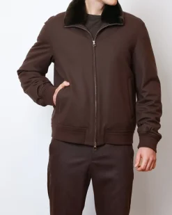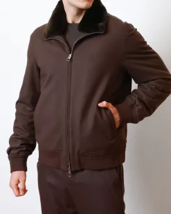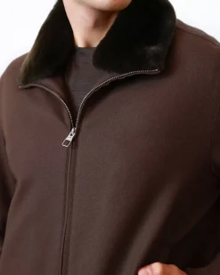 Чоловіча куртка-бомбер Montecore з натуральним коміром із кролика Rex. Теплий наповнювач (90% пух, 10% перо) та шерстяна тканина забезпечують комфорт і стиль у холодний сезон.