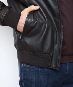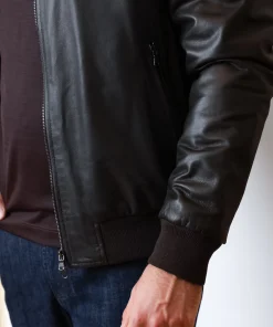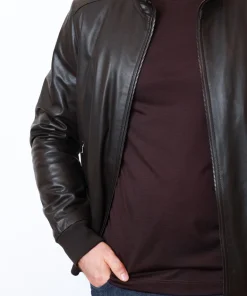 Куртка Buonamassa зі 100% натуральної шкіри у темно-шоколадному відтінку. Модель на блискавці з коміром-стійкою та еластичними манжетами, всередині підкладка з міксу бавовни й поліестеру для комфорту та практичності.