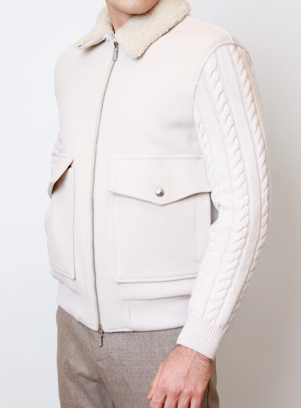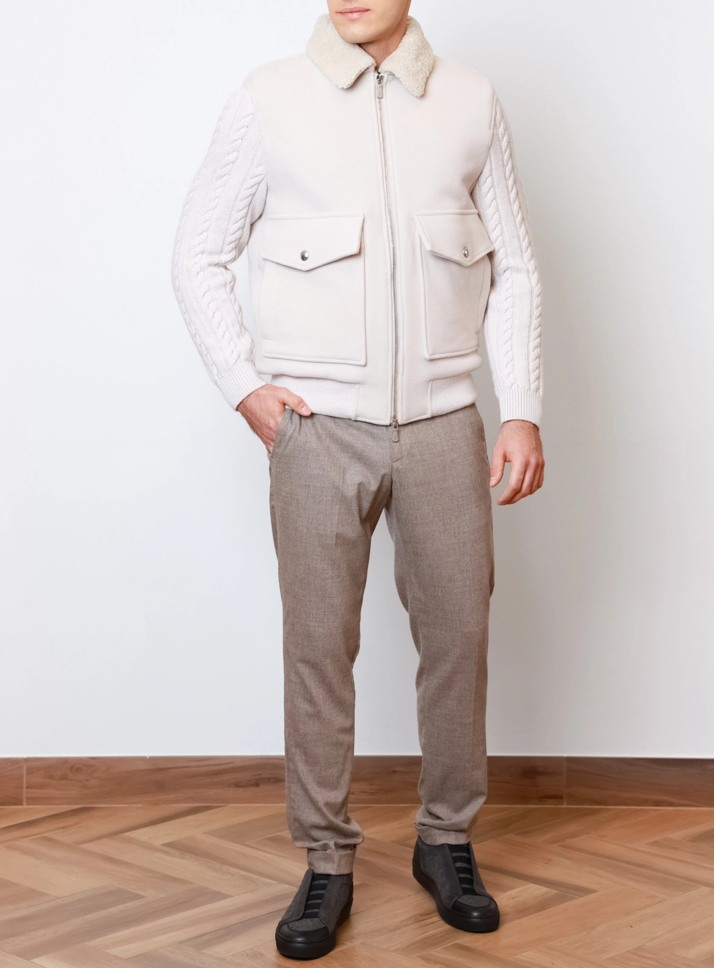 ✖Елегантна куртка від бренду Eleventy у молочному відтінку — функціональний вибір для холодного сезону. Завдяки натуральній овчині всередині виріб надійно захищає від холоду та створює максимальний комфорт у прохолодну осінь та навіть узимку.