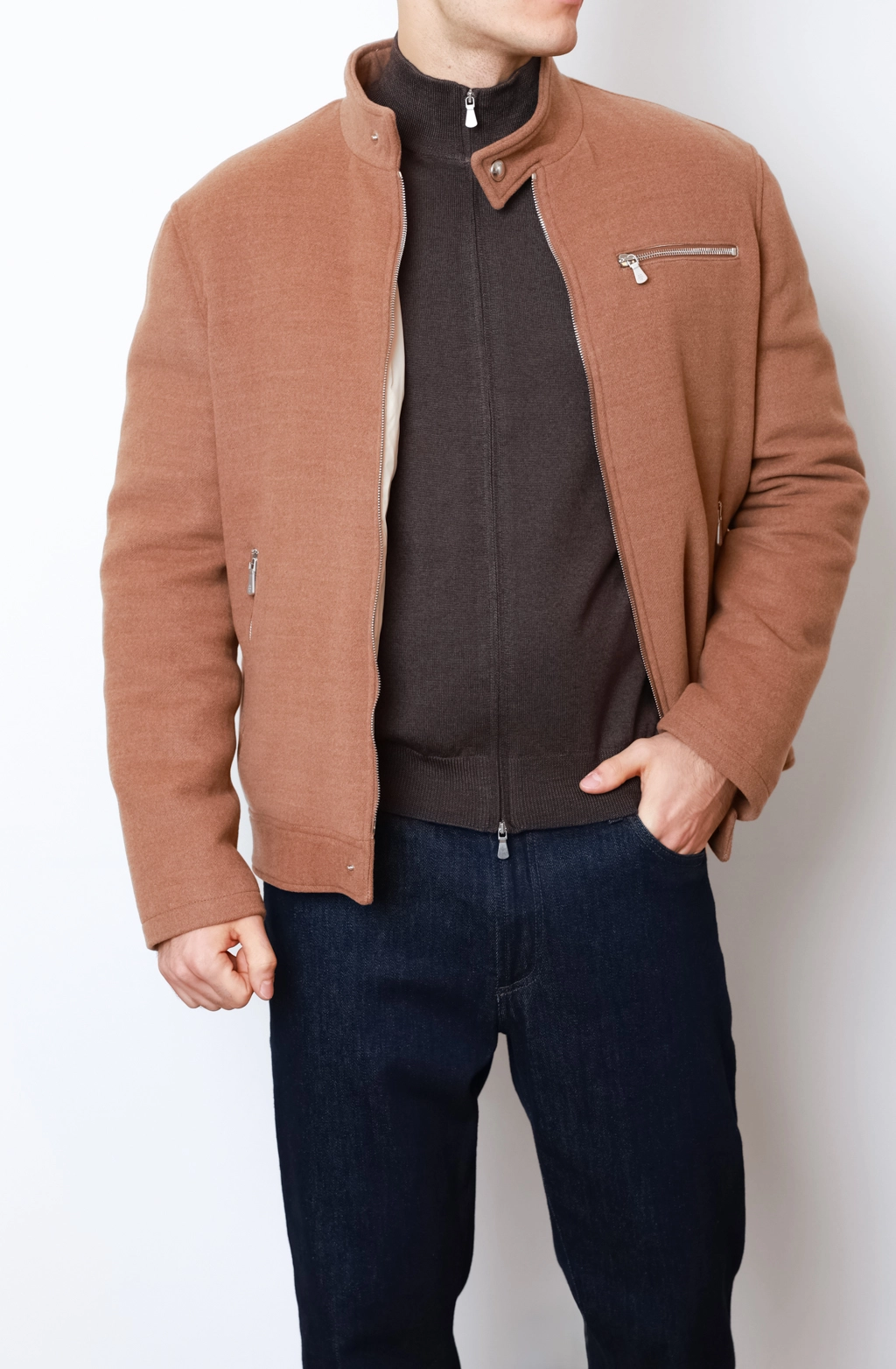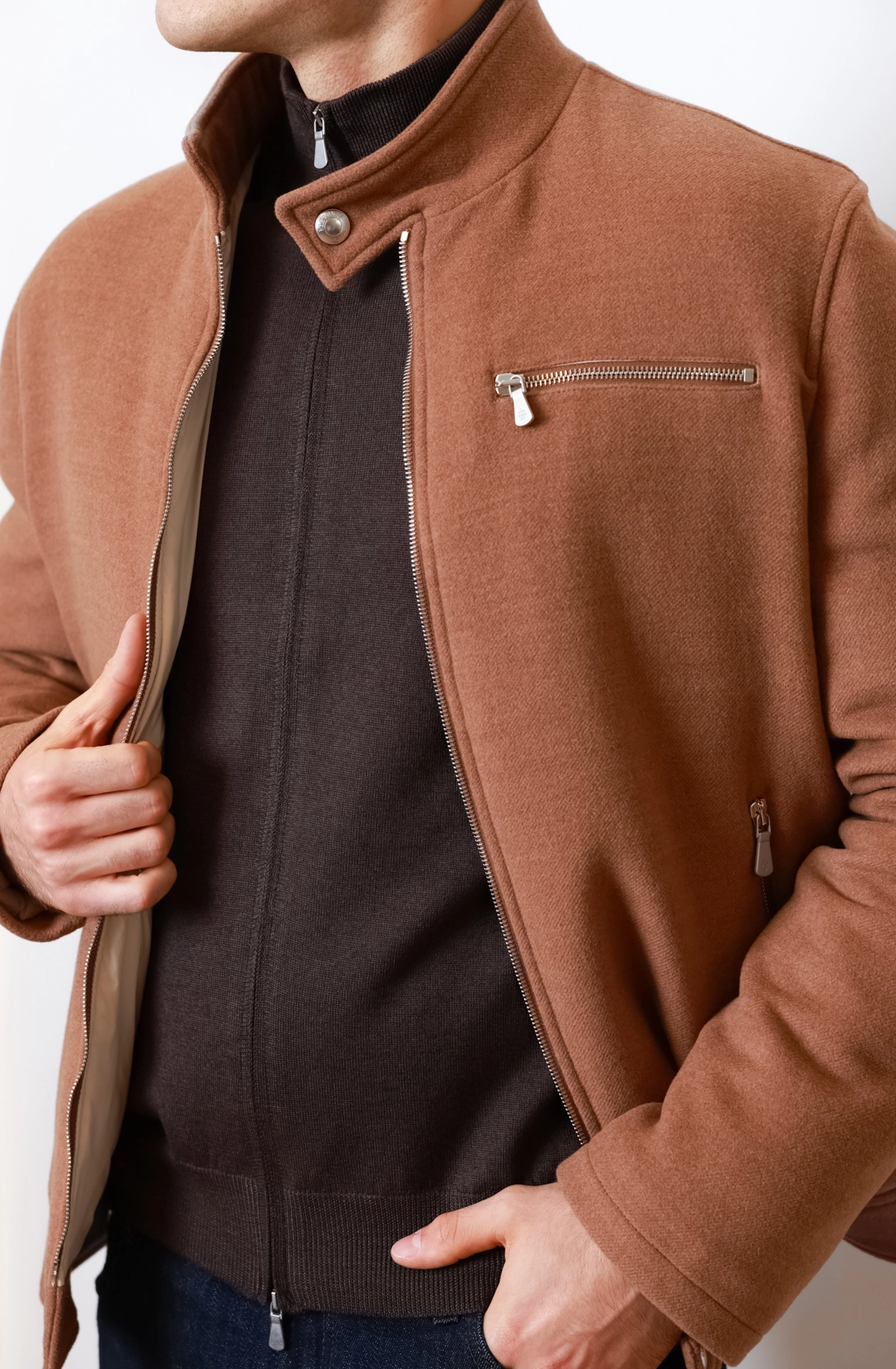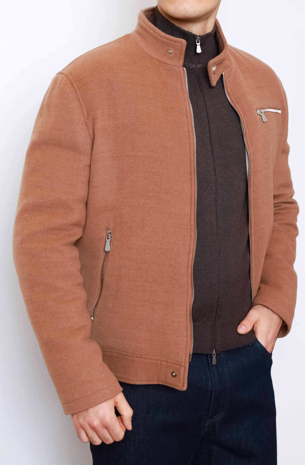 Чоловічий бомбер Eleventy з натуральної вовни з утепленням 90% пух і 10% перо. Модель з високим коміром, кишенями на блискавках і універсальним дизайном,