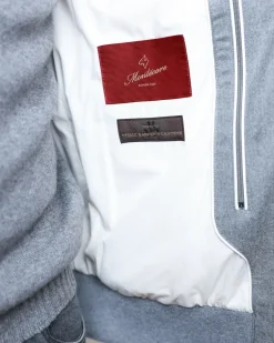 Підкладка виконана з гладкої тканини білого кольору з фірмовими бірками Montecore та Vitale Barberis Canonico.