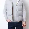 Чоловіча куртка з 100% кашеміру з повною підкладкою з натурального хутра бобра. Має подвійний металевий замок, м’які трикотажні манжети та елегантний графітово-сірий колір.