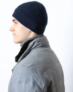 Шапка з 100% кашеміру темно-синього кольору. Еластична з рельєфною в’язкою й відворотом.