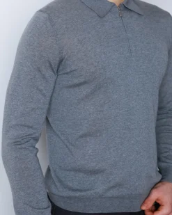 Сіре вовняне поло Buonamassa з довгим рукавом 100% натуральна вовна — тепла, м’яка й дихаюча.
