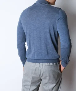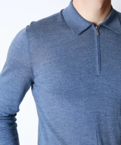 Синє поло Buonamassa зі 100% італійської вовни. Легкий преміальний трикотаж, із коміром та блискавкою, чистий лаконічний дизайн.