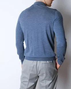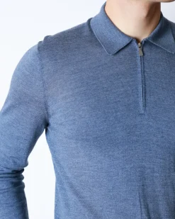 Синє поло Buonamassa зі 100% італійської вовни. Легкий преміальний трикотаж, із коміром та блискавкою, чистий лаконічний дизайн.