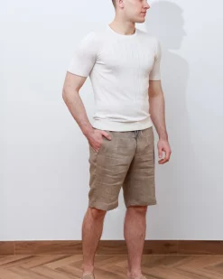 ✖Чоловічі лляні шорти Berwich бежевого кольору — це вдале поєднання легкості, стилю та комфорту, створене спеціально для сезону весна-літо 2025. Виготовлені зі 100% натурального льону, вони ідеально підходять для теплої погоди: дихаючі, приємні до тіла, не сковують рухів. Лаконічний дизайн і зручна посадка роблять цю модель ідеальною як для міських прогулянок, так і для відпочинку. Дві функціональні бокові кишені додають практичності, а загальна естетика підкреслює сучасний підхід до чоловічого гардероба.