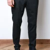 Штани оснащені застібкою на блискавку та гачок, що забезпечує акуратну посадку в талії. Для додаткового комфорту передбачено еластичний пояс зі шнурком із металевими наконечниками, який дозволяє регулювати обхват та адаптувати виріб під фігуру. Модель має дві бічні кишені та задню прорізну кишеню, що підкреслюють мінімалістичний силует і додають практичності.