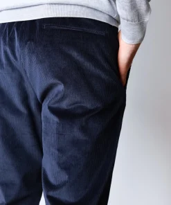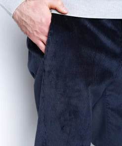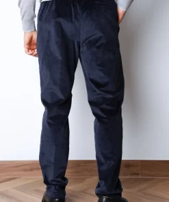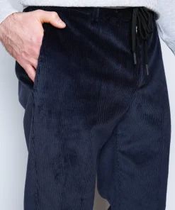 Чоловічі вельветові штани Berwich темно-синього кольору. 98% котон, 2% еластан. Має комфортну посадку regular fit, застібку на блискавку та гачок, еластичний пояс зі шнурком.