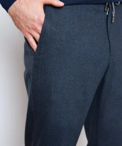 Темно-сині брюки Marco Pescarolo з вовни, кашеміру та еластану. М’які, еластичні та зручні, з поясом на шнурку, бічними та задніми кишенями.