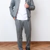 Куртка на блискавці оснащена високим коміром, бічними кишенями та фірмовим металевим логотипом на потилиці. Брюки прямого крою мають еластичний пояс зі шнурком і зручні кишені, що робить костюм максимально комфортним у щоденному використанні.