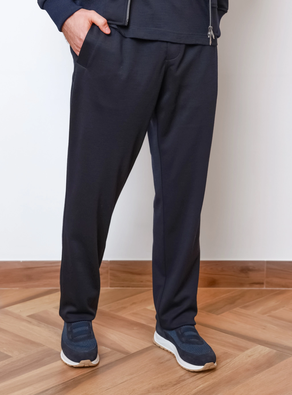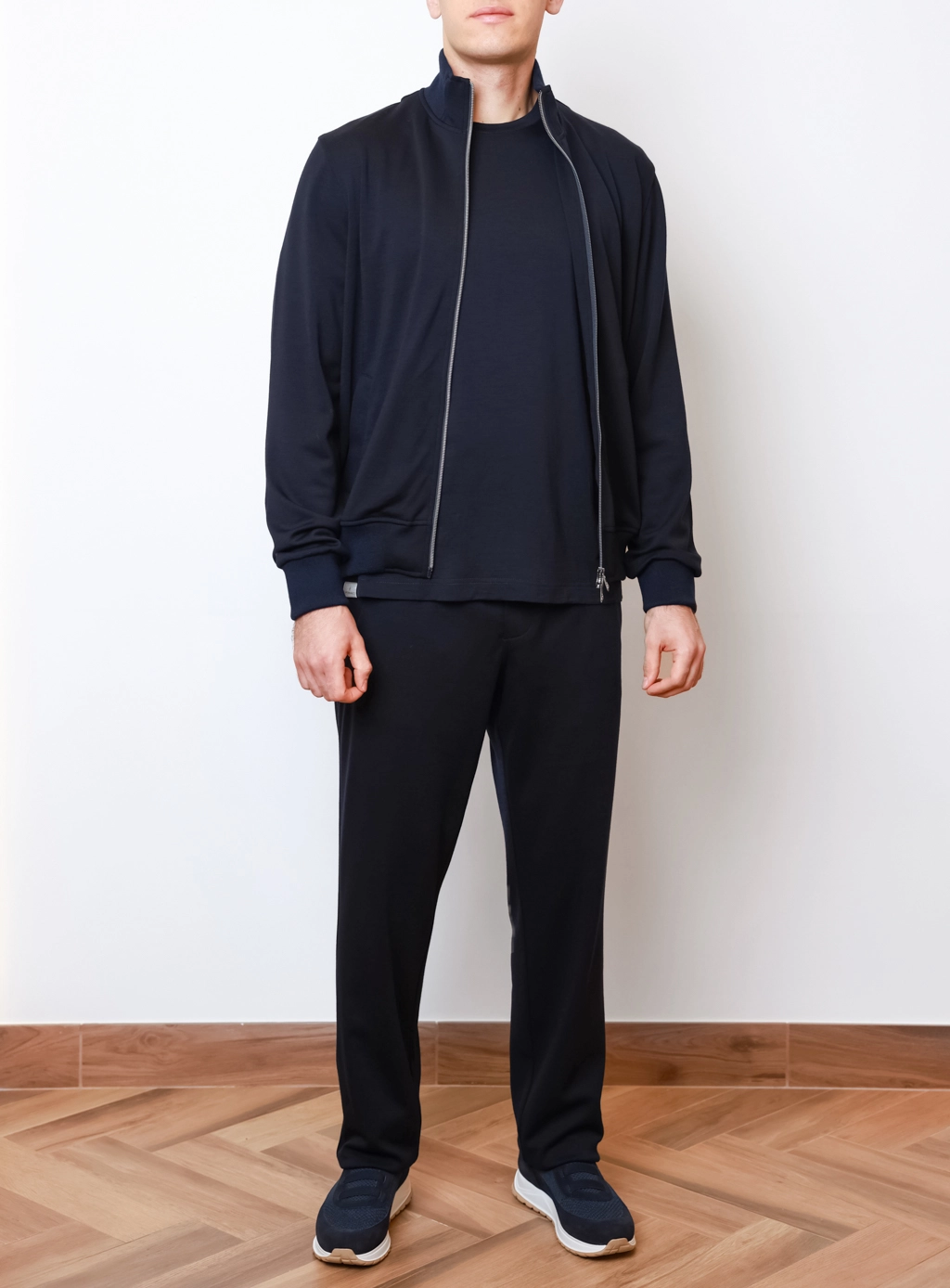 ✖Чоловічий спортивний костюм Capobianco у темно-синьому кольорі – приклад сучасного італійського casual-стилю з акцентом на комфорт та преміальну якість. Виконаний із 100% натуральної вовни, костюм ідеально поєднує практичність та елегантність.