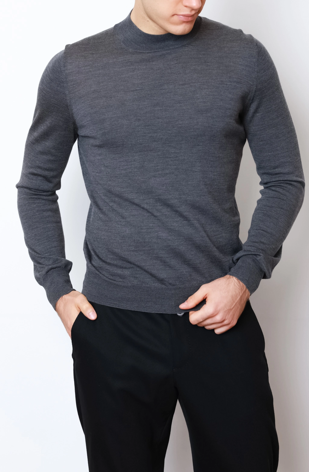 ✖Джемпер Buonamassa з круглим коміром виконаний зі 100% вовни мериноса. Натуральна пряжа відрізняється ніжністю, чудово пропускає повітря й підтримує комфортну температуру тіла в різні сезони. Лаконічний дизайн підкреслюється приталеним кроєм, що виглядає стильно та акуратно. Завдяки універсальному сірому відтінку джемпер легко поєднується як з класичними брюками, так і з повсякденними джинсами.