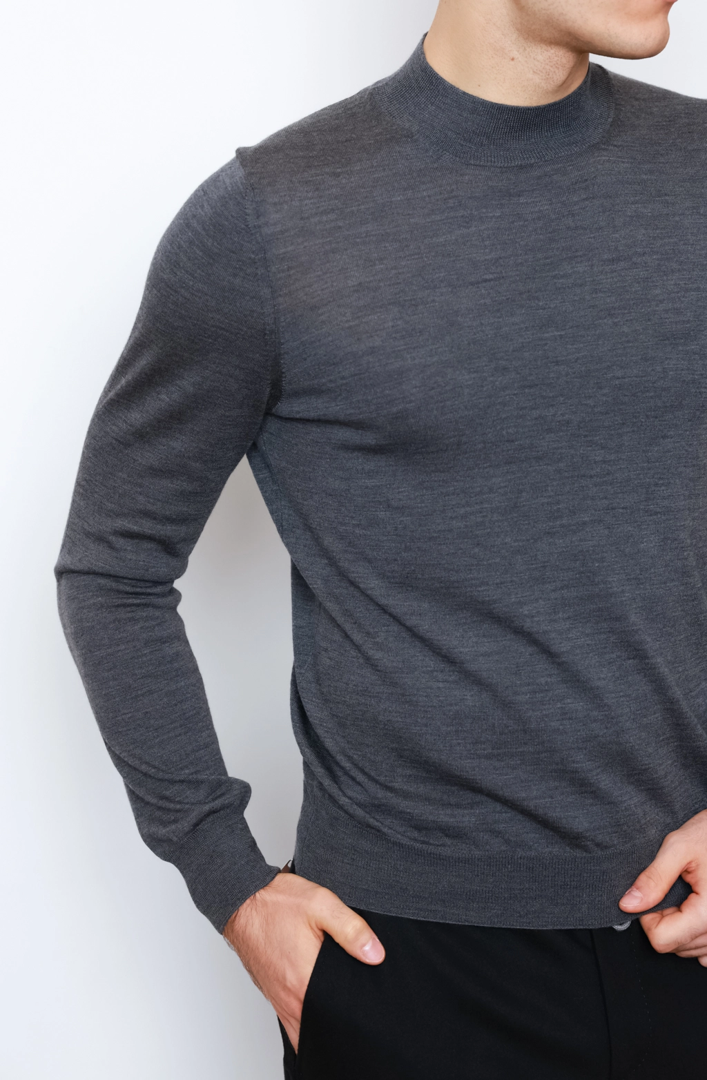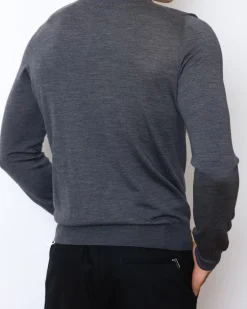 Графітовий джемпер Buonamassa з круглим коміром, виконаний зі 100% вовни мериноса. Лаконічний крій, м’яка натуральна тканина та резинка на манжетах.