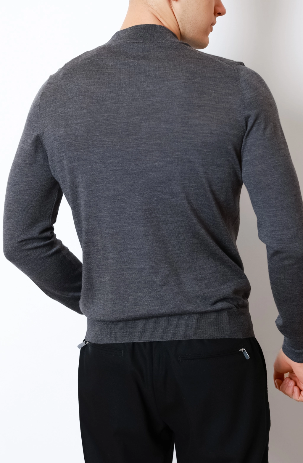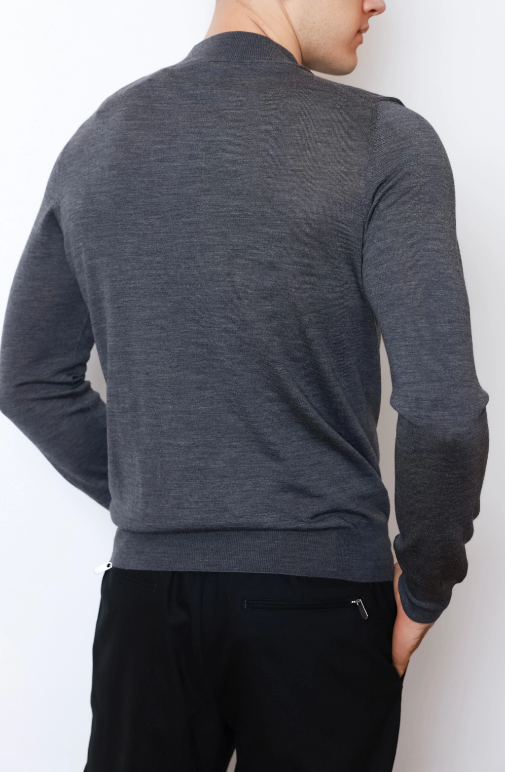 Резинка на манжетах, комірі та по низу виробу забезпечує ідеальну посадку й запобігає деформації після прання. Джемпер підходить як для ділових зустрічей, так і для повсякденного носіння, підкреслюючи елегантність чоловічого стилю.