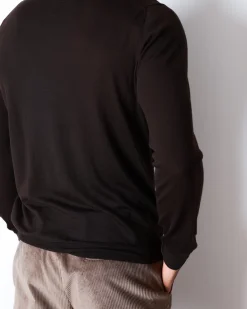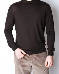 Джемпер Buonamassa у кольорі гіркого шоколаду. 100% тонка вовна мериноса, комір-стійка, м’який і дихаючий трикотаж, ідеальний базовий елемент чоловічого гардеробу.
