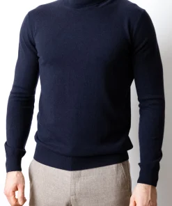 Гольф Panicale з вовни, шовку та кашеміру. М’який, теплий, елегантний. Висока горловина, темно-синій колір, ідеальна посадка.