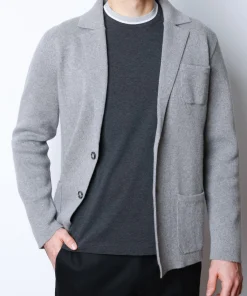 Трикотажний кардиган Buonamassa зі 100% вовни у світло-сірому відтінку. Модель виконана у форматі knit-jacket, що створюють елегантний силует піджака. Має накладні кишені, застібається на два гудзики.