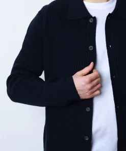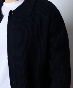 М’яка фактура з виразною вертикальною в’язкою створює фактурний об’єм і водночас забезпечує комфорт і тепло. Комір-«сорочка» та застібка на класичні гудзики додають виробу структурності, дозволяючи легко комбінувати його з футболкою, сорочкою або тонким светром.