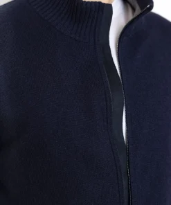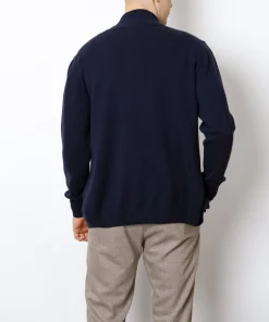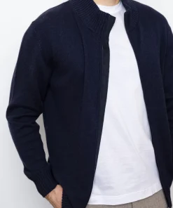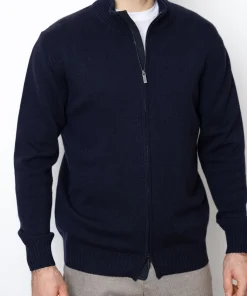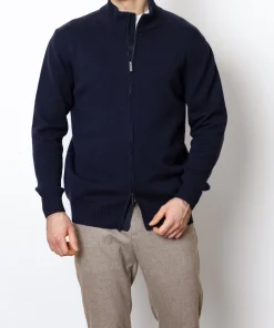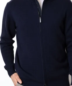 Кардиган Panicale з вовни, шовку і кашеміру. Високий комір, двостороння блискавка, темно-синій колір. М’який, теплий, універсальний — для елегантних щоденних образів.