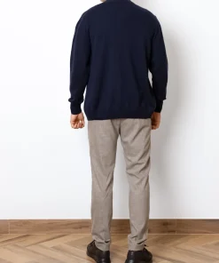 ✖Преміальний чоловічий кардиган Panicale з натуральних матеріалів: вовна, шовк і кашемір. Модель оснащена високим трикотажним коміром-стійкою, який створює акуратний силует і забезпечує додатковий комфорт у холодну погоду. У центрі розташована повна двостороння блискавка. Два бігунки дозволяють розстібати кардиган як зверху, так і знизу, що зручно для створення різних образів, посадки під верхній одяг або забезпечення більшої свободи рухів. Темно-синій колір універсальний та легко комбінується з базовим гардеробом.