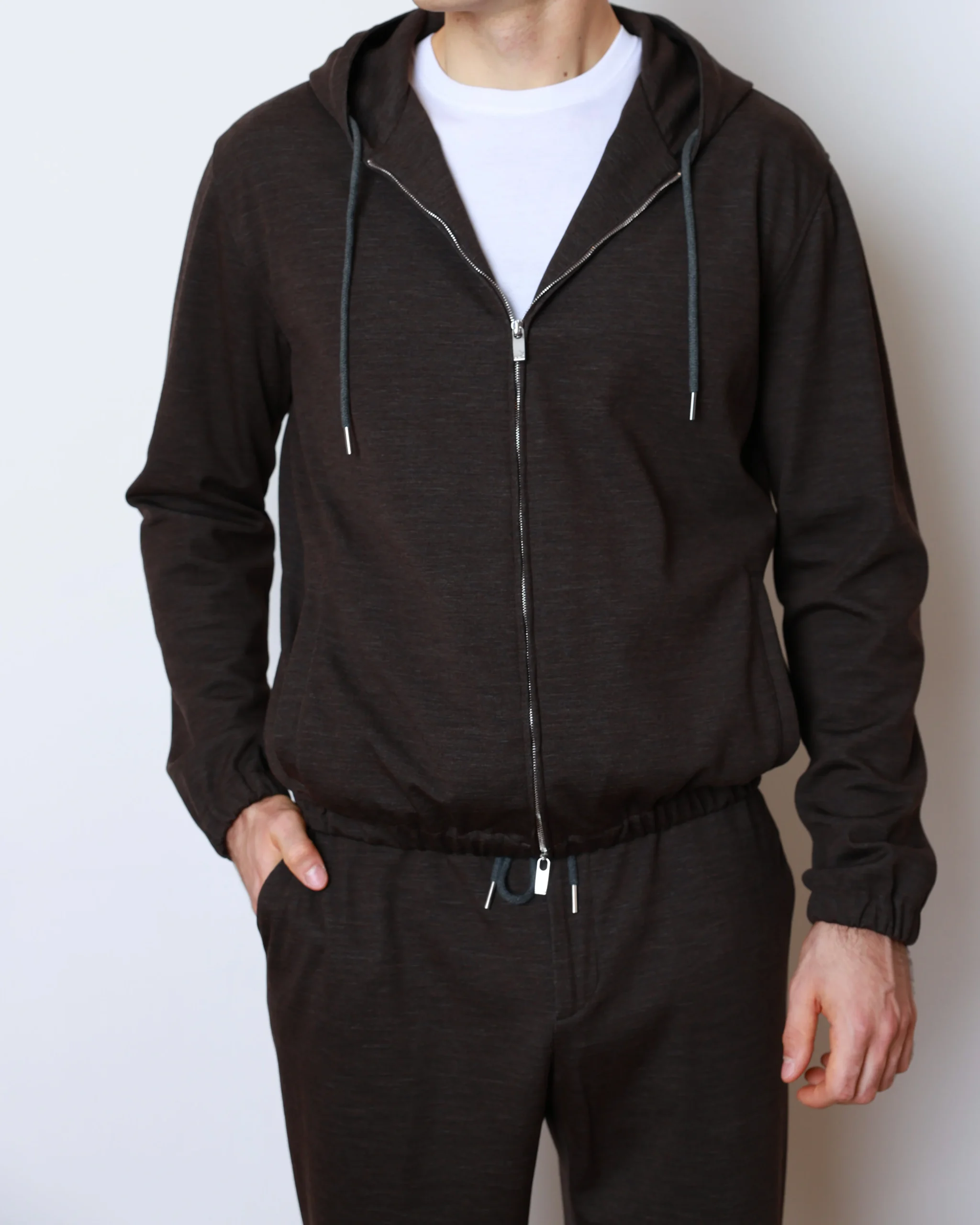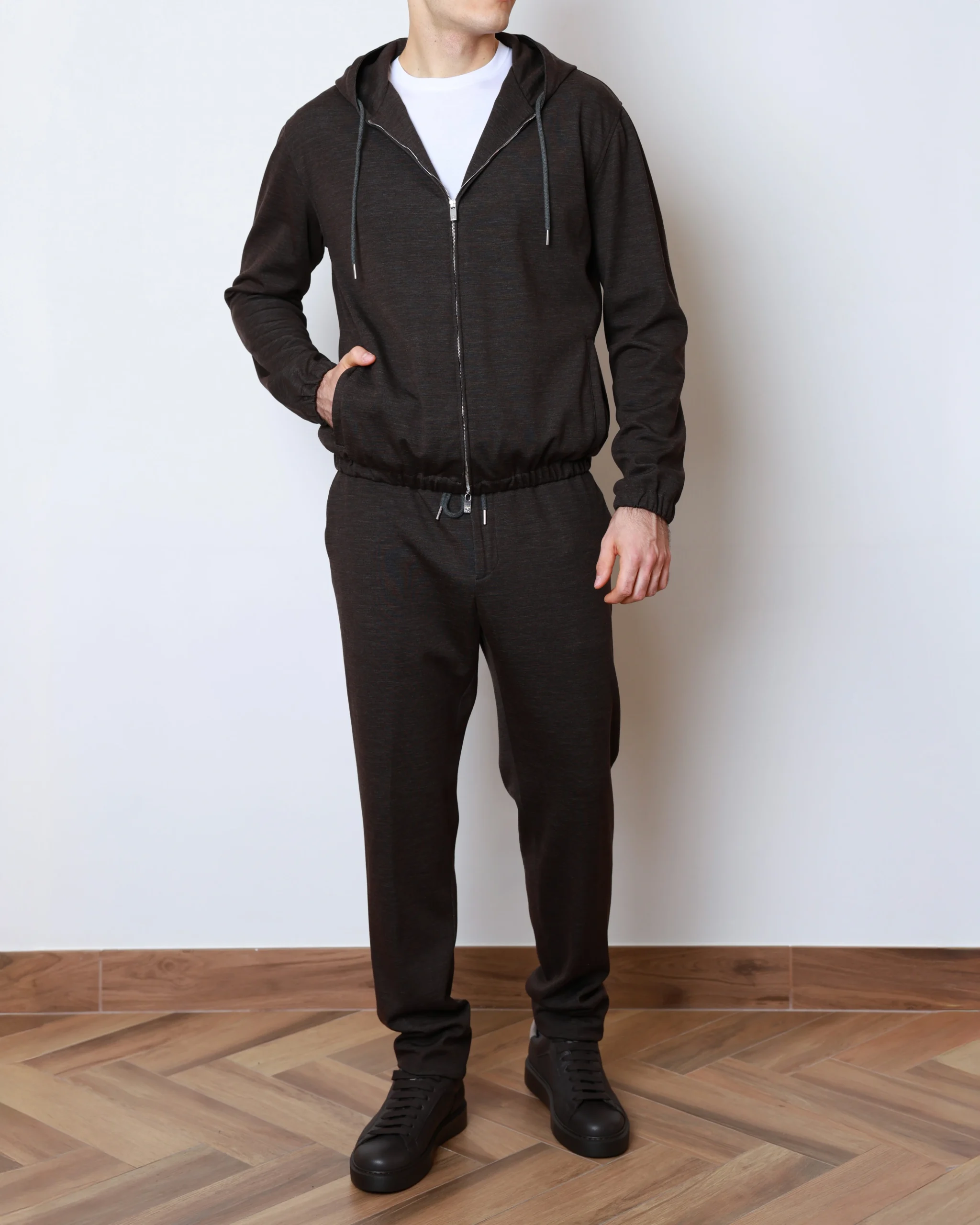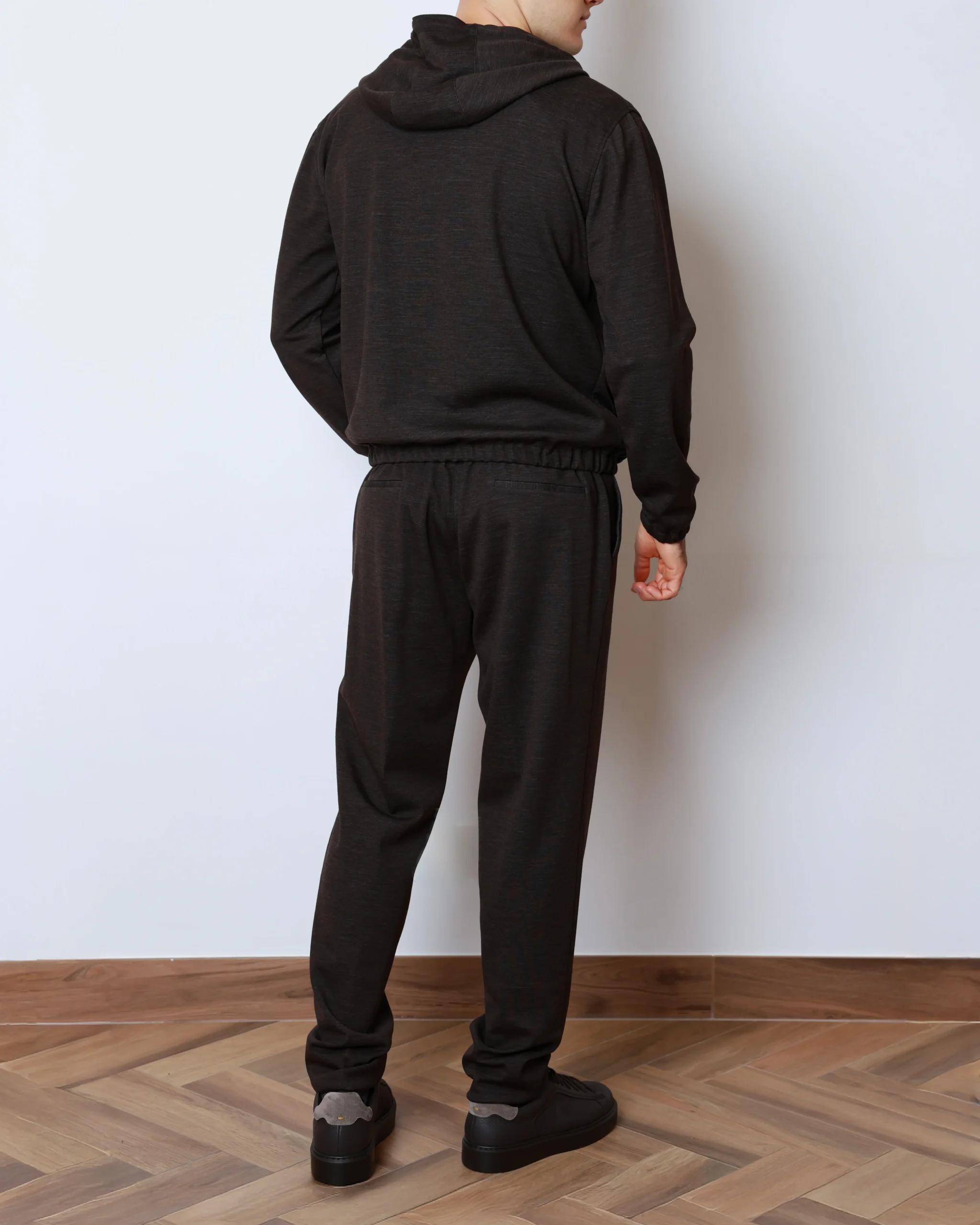 Чоловічий костюм Tombolini Zero Gravity виконаний із легкої еластичної вовни. Кофта на блискавці з капюшоном і брюки з еластичним поясом