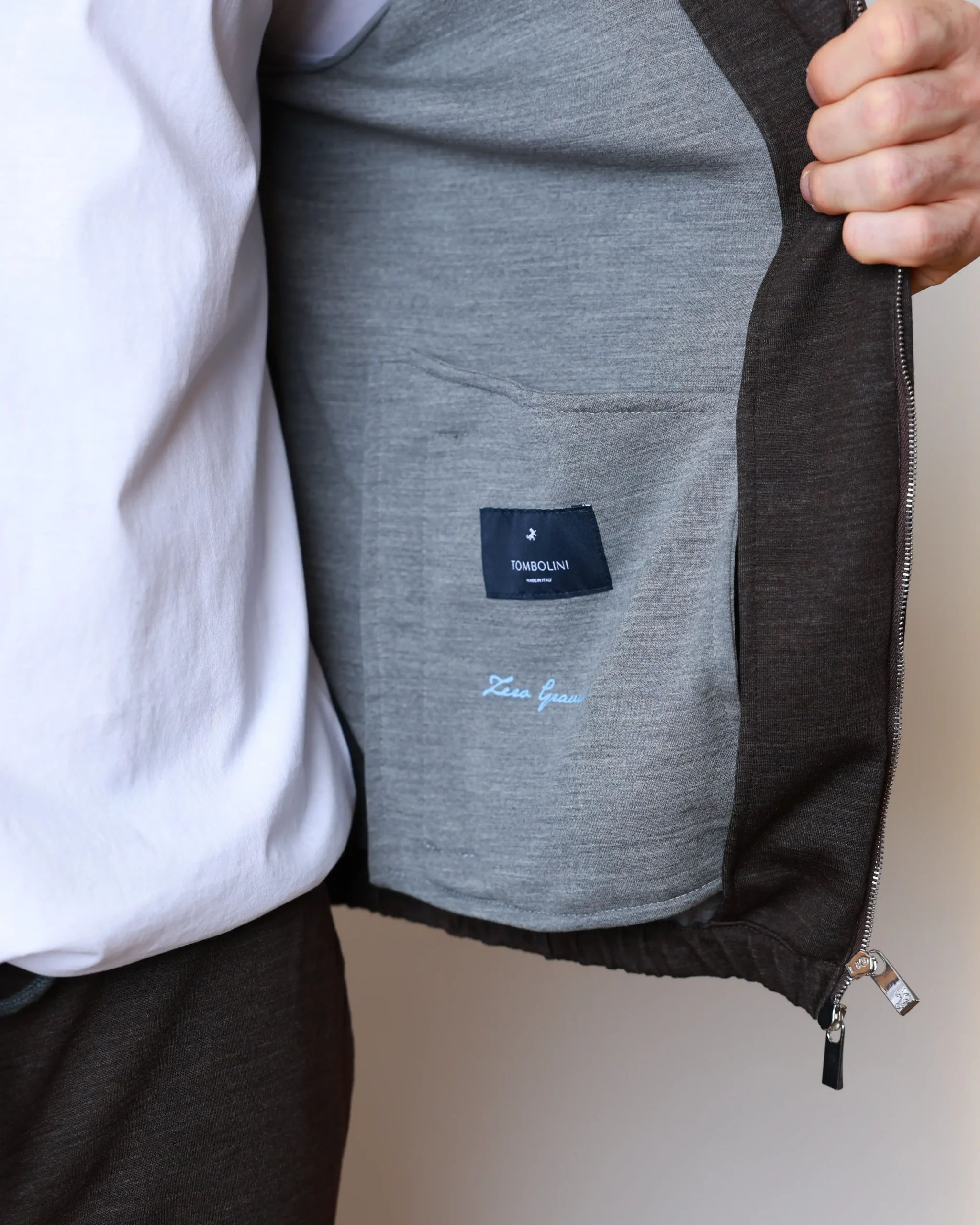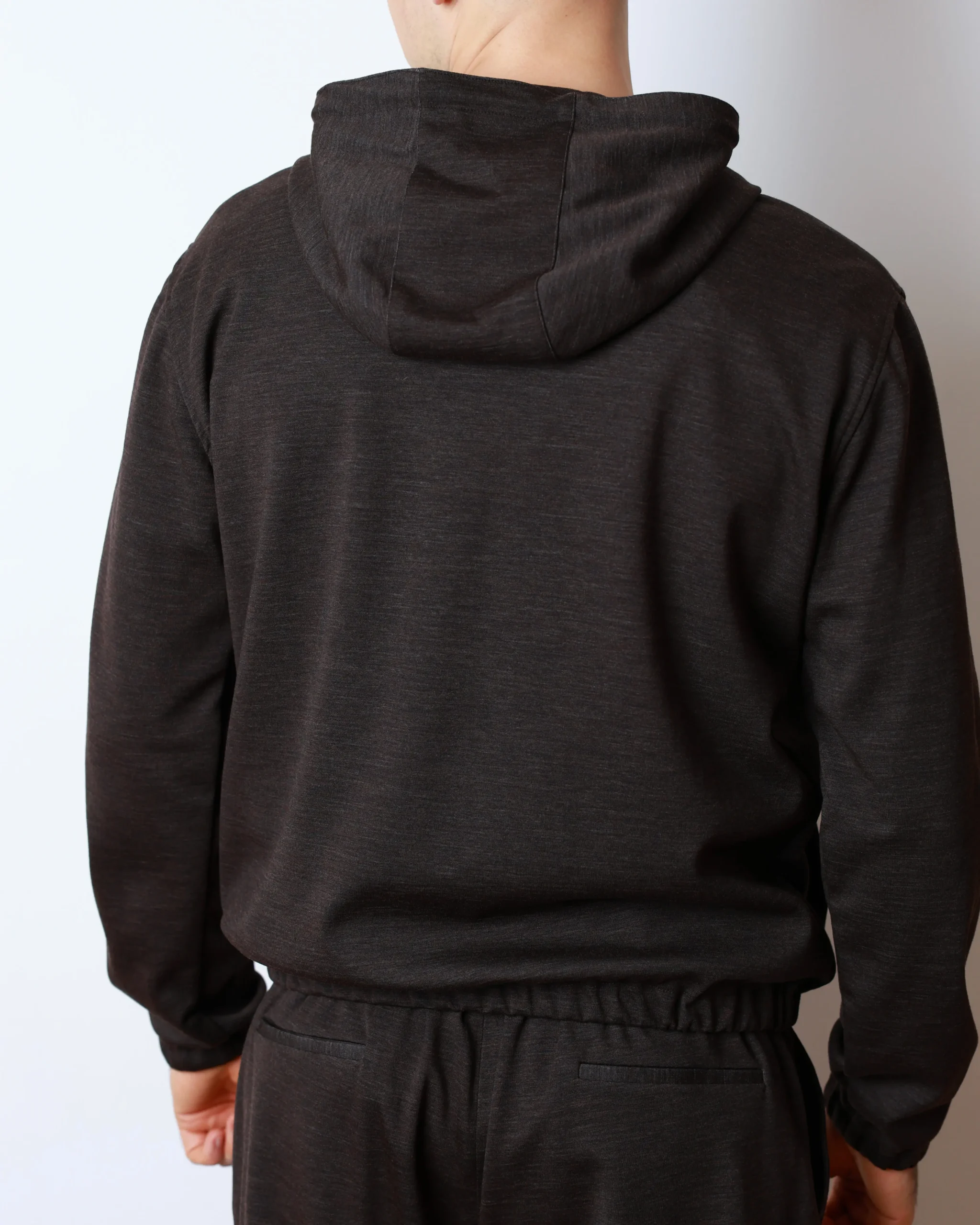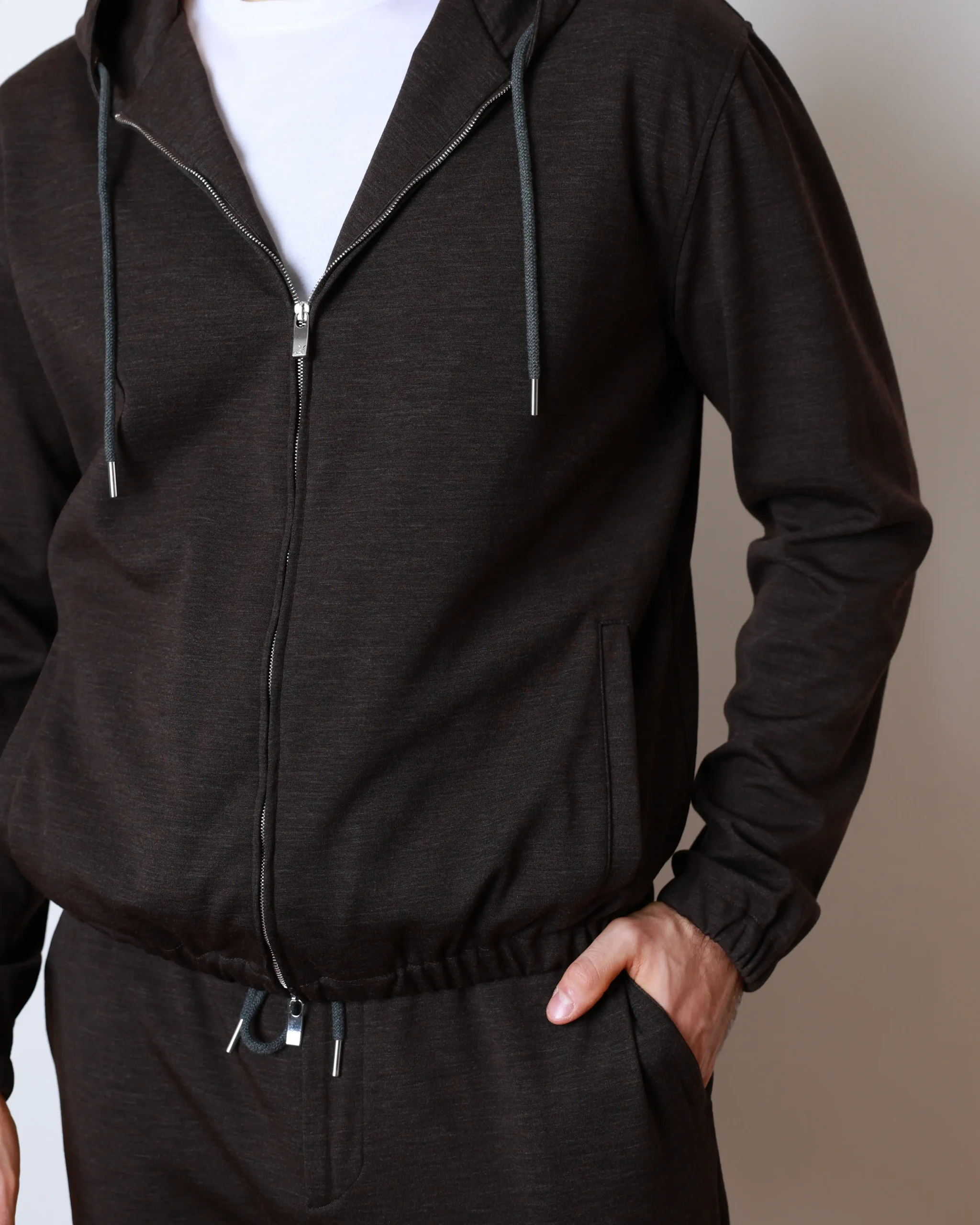 Чоловічий костюм Tombolini Zero Gravity виконаний із легкої еластичної вовни. Кофта на блискавці з капюшоном і брюки з еластичним поясом
