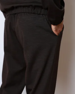 Брюки мають прямий крій з еластичним поясом і куліскою, що дозволяє регулювати посадку на талії. Модель доповнена бічними та задніми кишенями, які забезпечують функціональність і комфорт у повсякденному використанні.