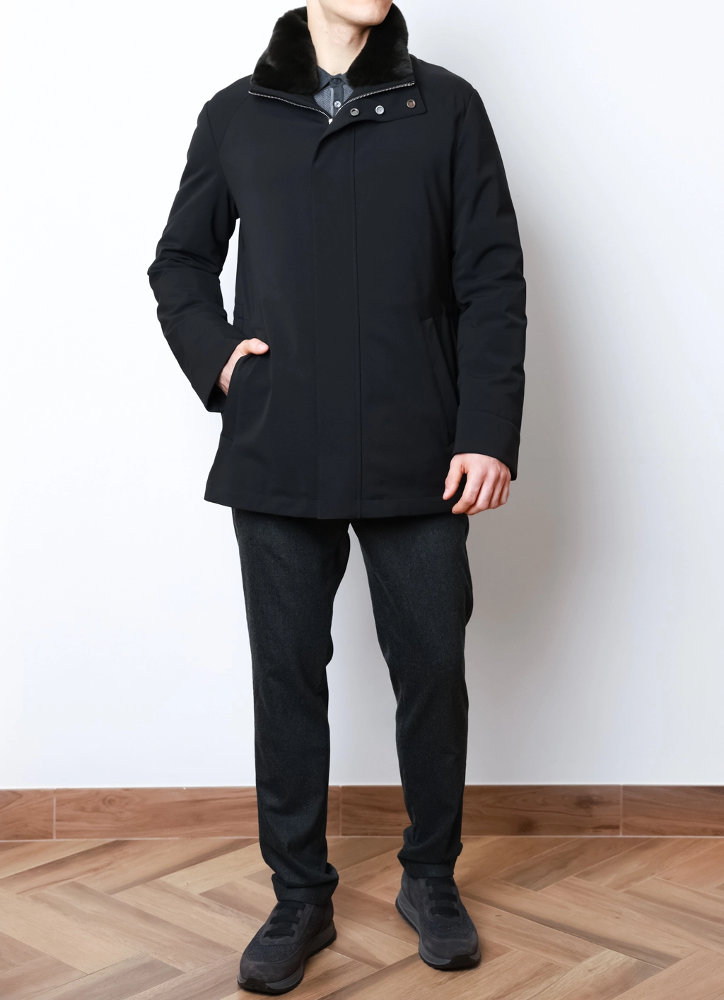 Модель має знімний комір із натурального хутра кролика рекс, надзвичайно м’який на дотик, який додає вишуканості та захисту від холоду. Зовнішній дизайн стриманий і лаконічний: