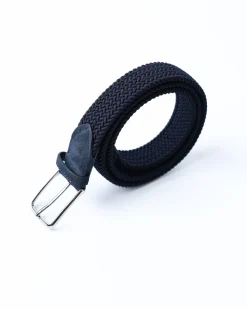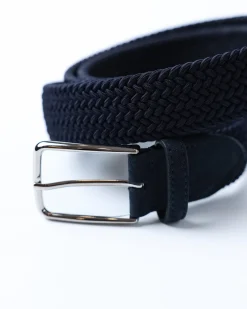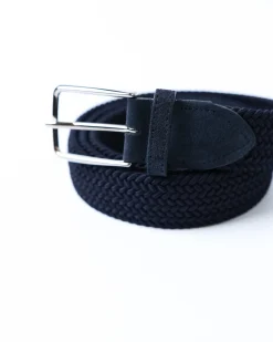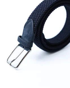 Плетений ремінь Tombolini з віскози з замшевими вставками. Комфортний, еластичний, темно-синій — стильний акцент для образу.