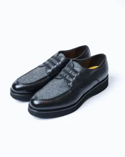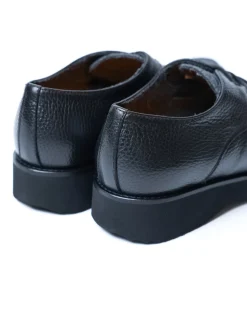 ✖Чоловічі дербі Doucal’s виготовлені з поєднання натуральної телячої шкіри (70%) та вовни (30%), що надає моделі вишуканого вигляду та робить її унікальною серед класичного взуття. Контраст текстур гладкої шкіри й теплої вовняної тканини додає взуттю сучасного акценту, зберігаючи при цьому традиційний силует дербі з відкритою шнурівкою.