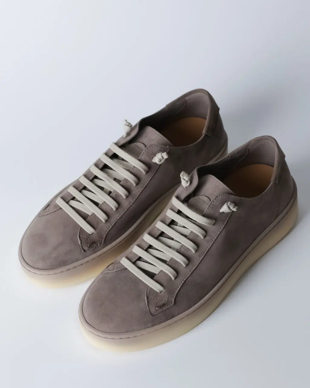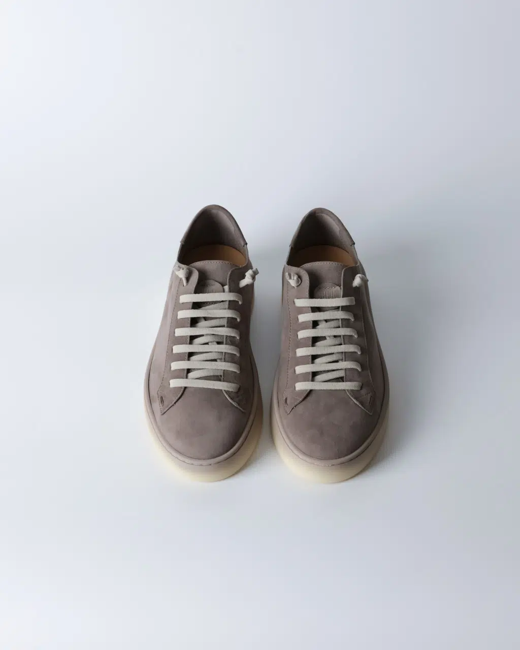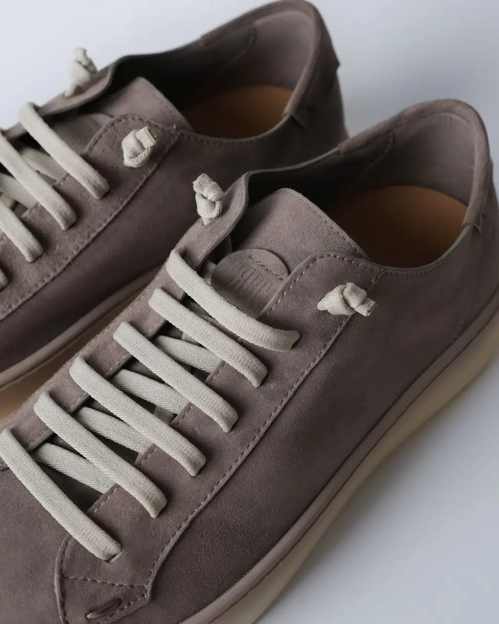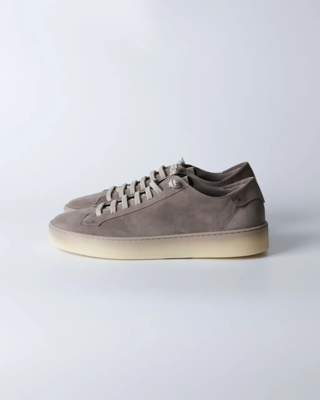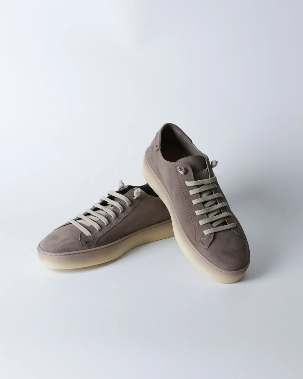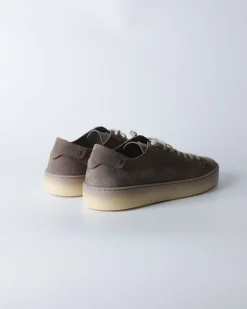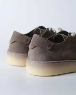 Кеди Fabiano Ricci з м’якої реверсивної шкіри у сіро-коричневому відтінку з контрастними світлими шнурками та напівпрозорою світлою підошвою. Легка конструкція без підкладки забезпечує природну посадку та комфорт протягом дня.