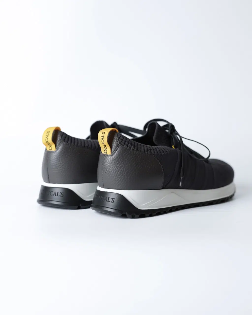 Кросівки Doucal’s із дихаючого текстилю сірого кольору з шкіряною п’яткою, легкою гумовою підошвою та анатомічною устілкою memory foam для підвищеного комфорту.