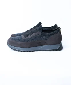 ✖Чоловічі кросівки Doucal’s у стильному сіро-синьому відтінку. Модель виконана з комбінації м’якої замші та в’язаної текстильної тканини, що забезпечує комфорт і дихання стопи. Верх еластичний, з резинковими вставками для зручного взування без шнурків — ідеальний варіант для щоденного носіння.