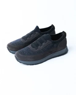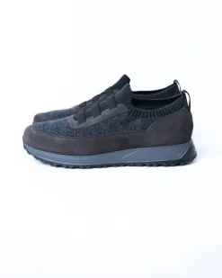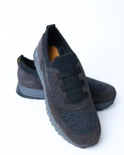 ✖Чоловічі кросівки Doucal’s у стильному сіро-синьому відтінку. Модель виконана з комбінації м’якої замші та в’язаної текстильної тканини, що забезпечує комфорт і дихання стопи. Верх еластичний, з резинковими вставками для зручного взування без шнурків — ідеальний варіант для щоденного носіння.