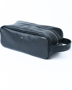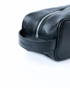 Несессер Doucal’s виготовлена з 100% натуральної зернистої шкіри чорного кольору. Створений для стильного зберігання всіх засобів для догляду. Має класичну прямокутну форму з міцною блискавкою та шкіряною ручкою з тисненим логотипом бренду.