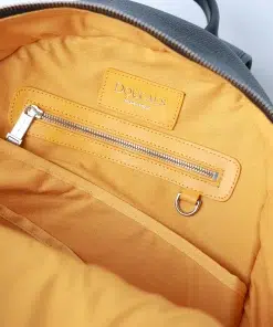 Дизайн — мінімалістичний і сучасний: округла форма, передня кишеня на блискавці та металеві елементи сріблястого кольору створюють стриманий, але виразний вигляд. На передній панелі — лаконічне тиснення логотипу Doucal’s із фірмовою золотою деталлю.