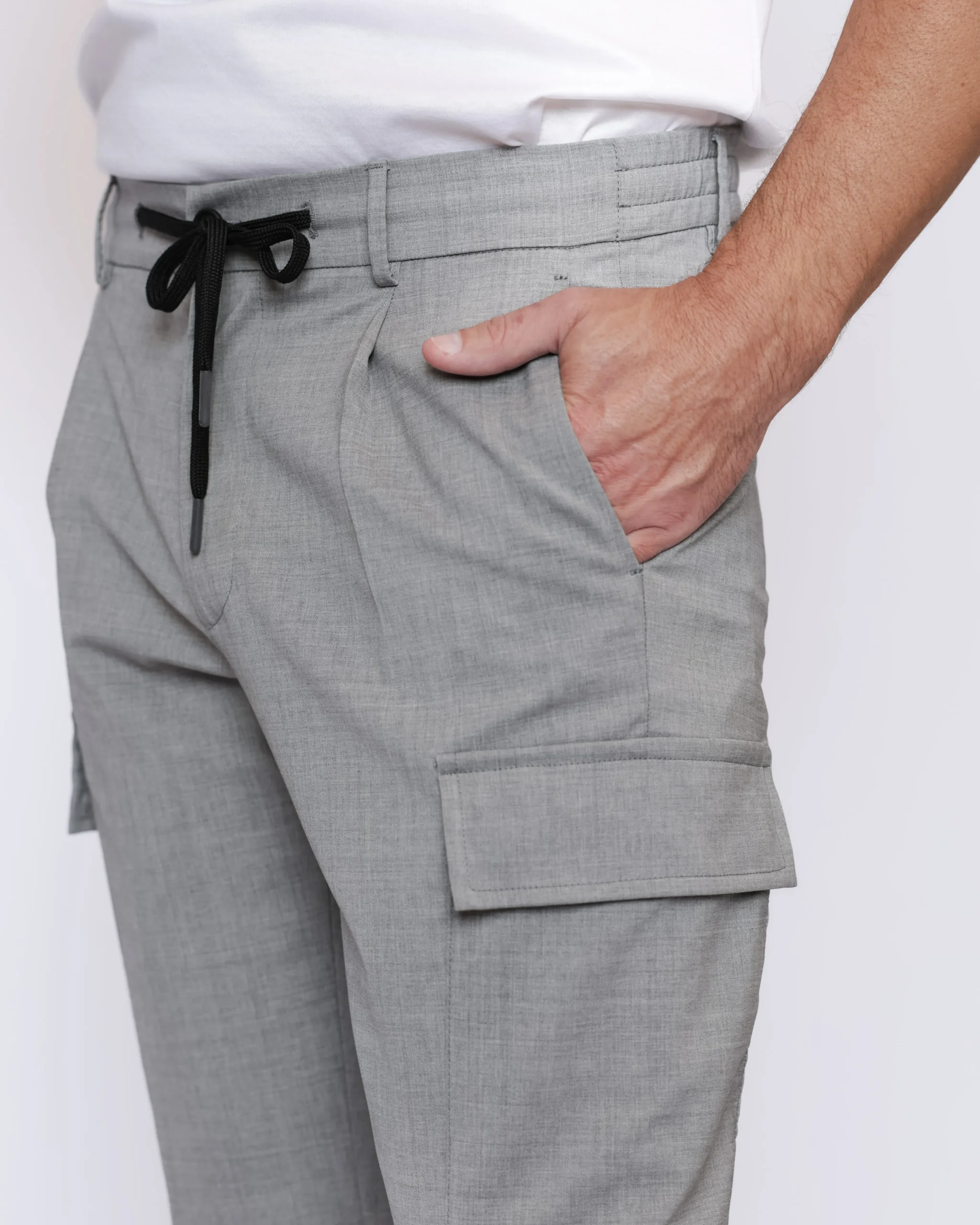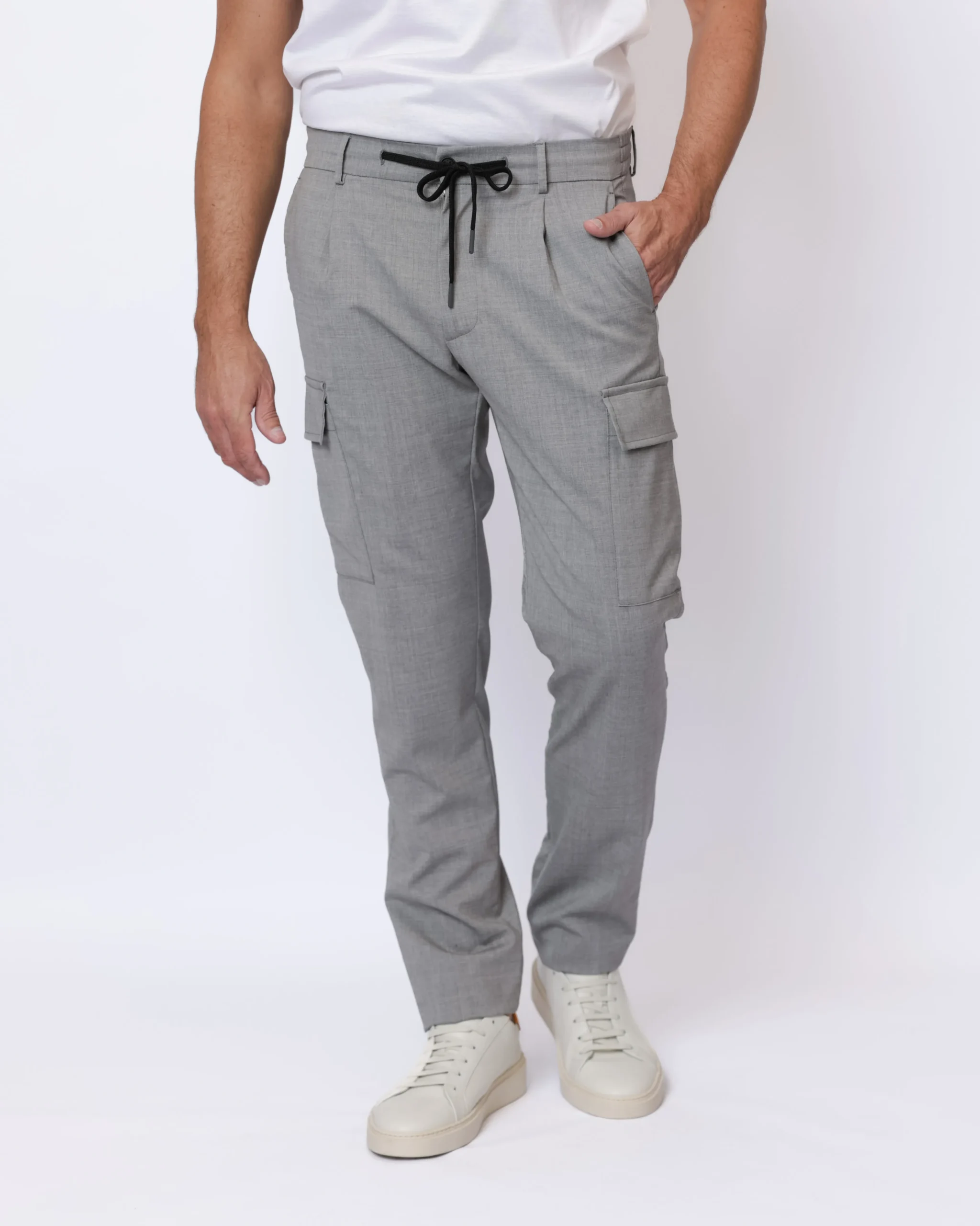 Чоловічі штани-карго Berwich, виконані із бавовни з додаванням еластану. Функціональні кишені та регульований пояс із шнурком.