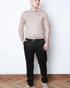 Чорні штани Marco Pescarolo з натуральної суміші льону та бавовни, доповнені еластичним поясом на зав’язках. Ідеальний вибір для комфортного та стильного літнього образу.